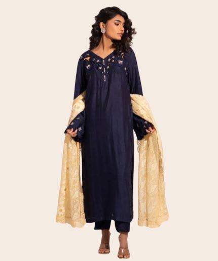 Crafted for both style and comfort, this ensemble is ideal for festive occasions, semi-formal gatherings, or evening celebrations. The rich copper tone and intricate detailing make it a standout piece, allowing you to make a bold yet refined fashion statement. Complete the look with minimal jewellery and heeled sandals to exude confidence and grace effortlessly.
